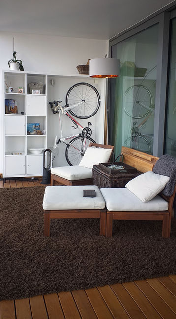Ameublement d’un penthouse vide, conception et création d'un ilot de cuisine, tête de lit, lit enfant et la modification du Kallax Ikea pour le stockage du vélo.